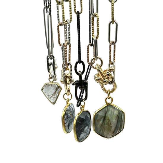 Meet your new favorite chains—Italian-made with textured, mixed metals. Effortlessly switch up your pendants and transform your look to match any vibe, any moment.