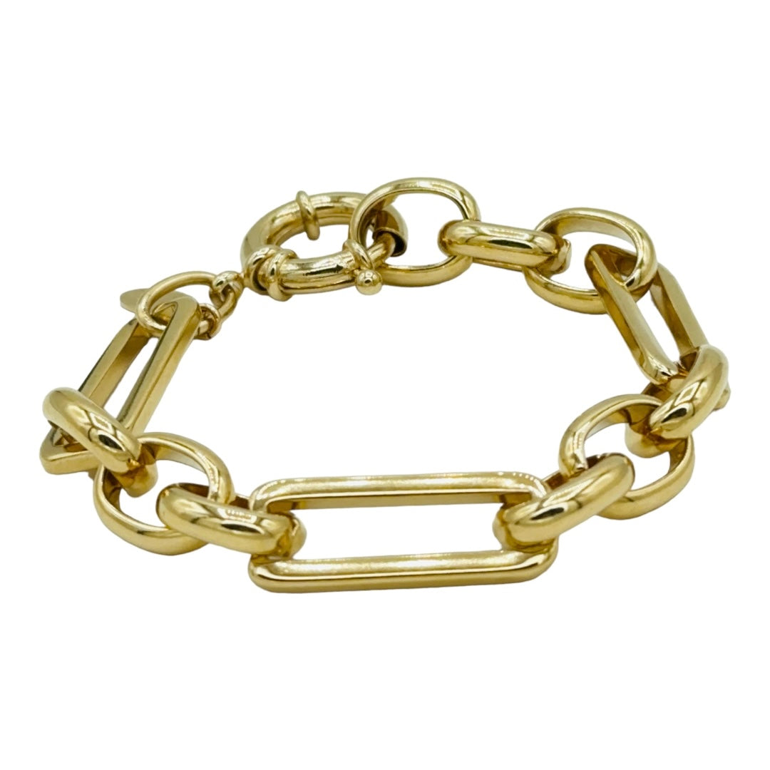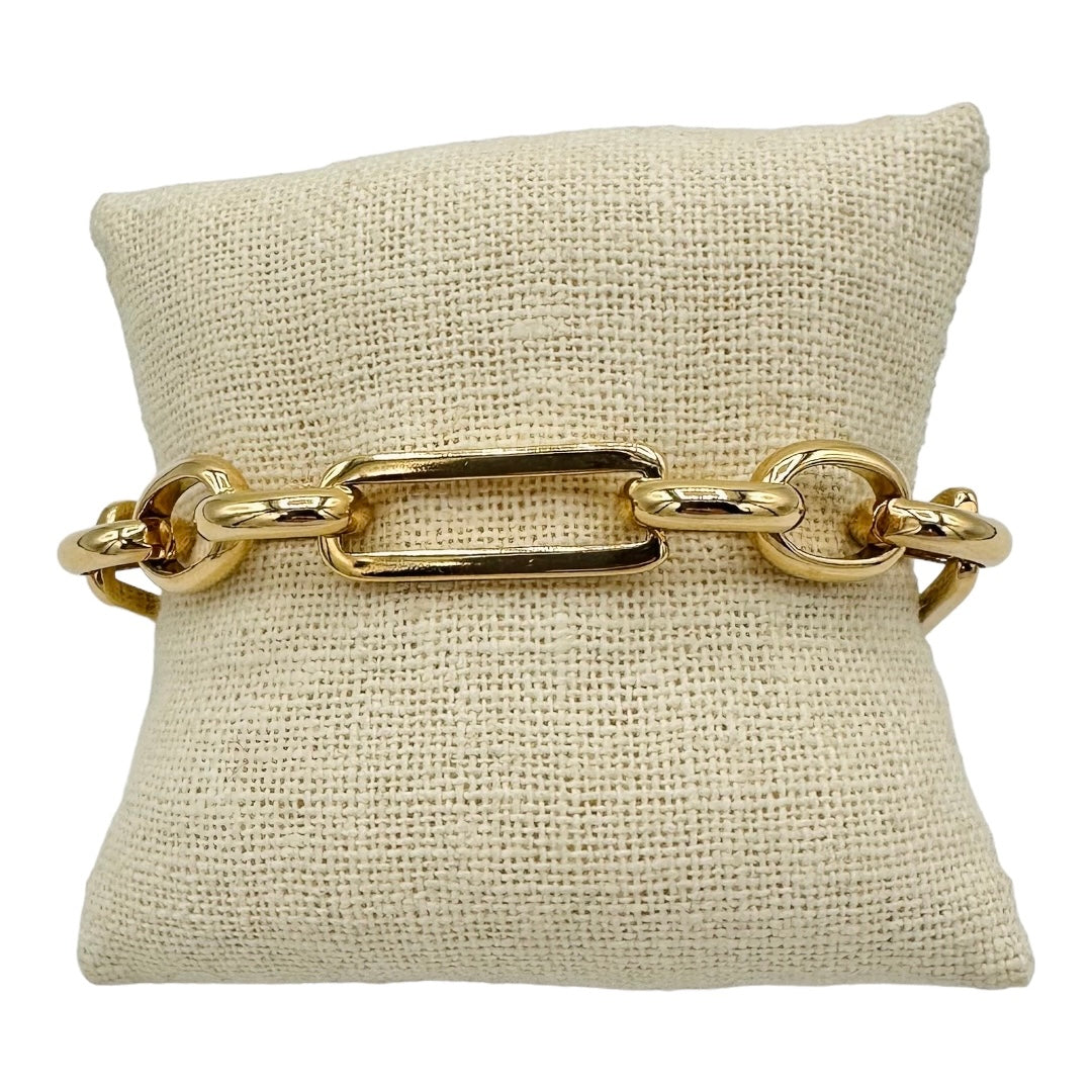 Add a bold and stylish touch to your bracelet collection with the Emilia Chain Bracelet. This chunky chain features oval and rectangle links, making it unique and eye-catching. Perfect for any outfit, this bracelet is a must-have for any fashion-forward individual.