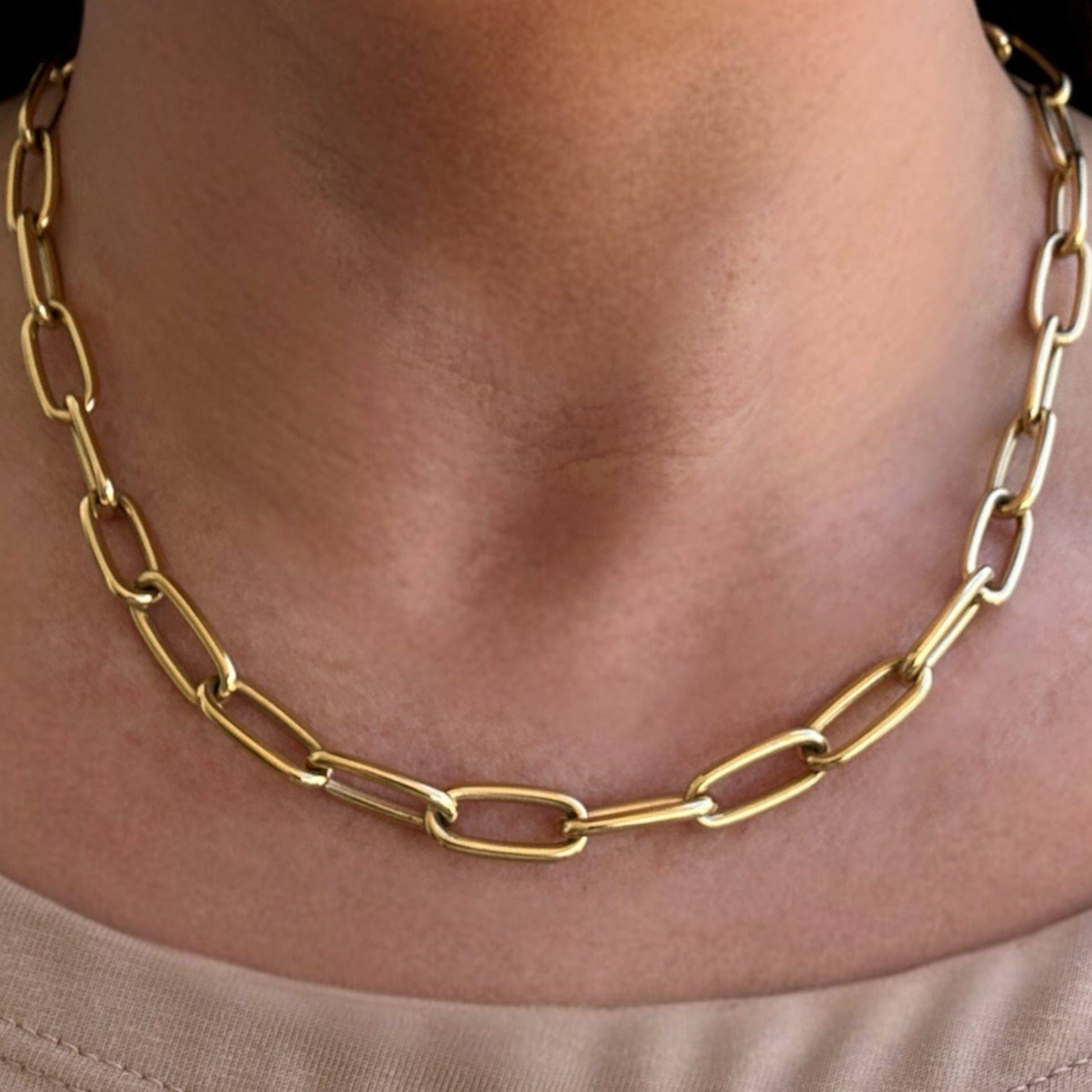 Our chains have a high-quality brass base—the same type of metal used to make real 14kt and 18kt gold chains.
