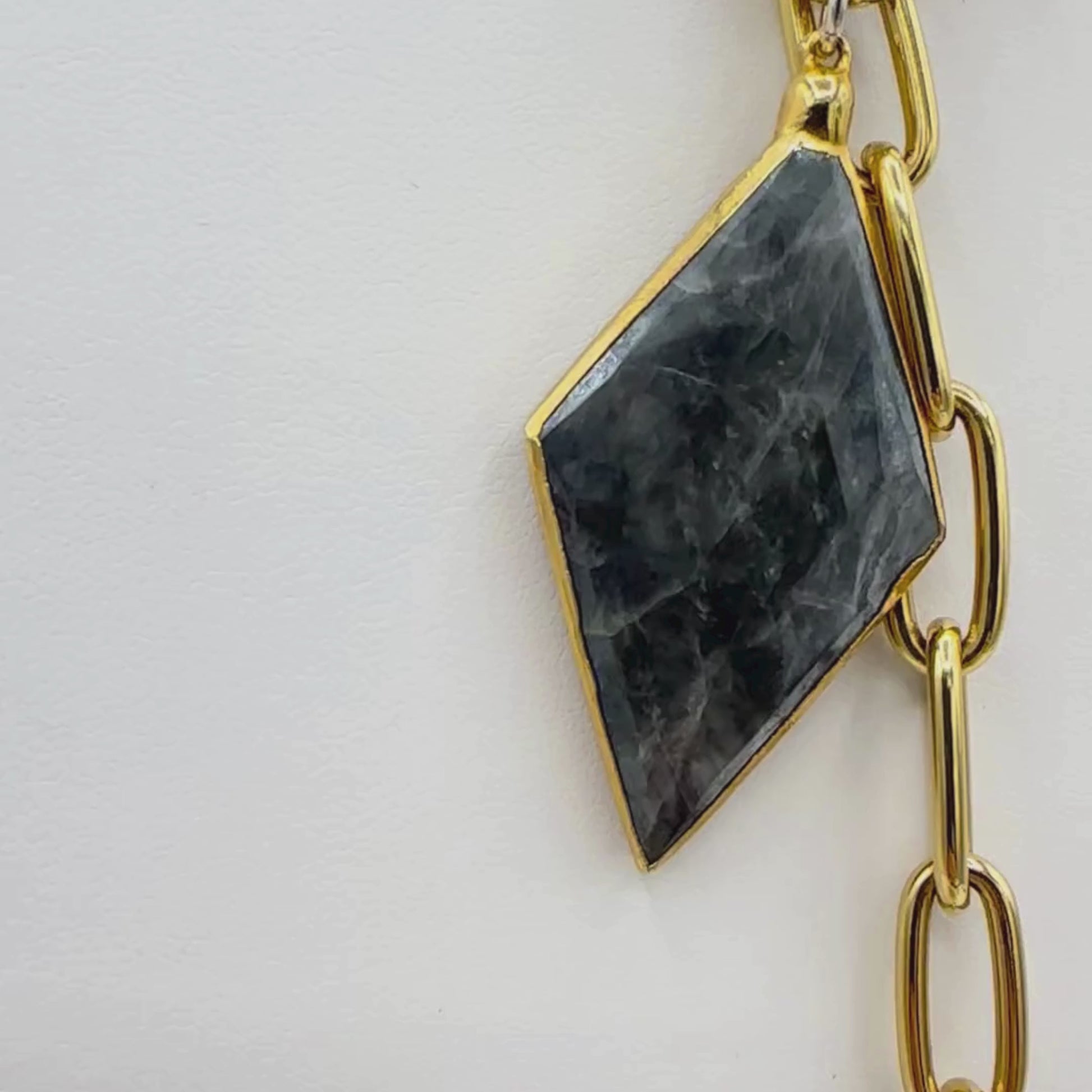 Elevate your accessory game with the Oval Paper Clip Multi-Use Necklace**, featuring a removable Labradorite gemstone pendant. Crafted in luxurious 24kt electro-formed gold with 7x more gold than standard plating, this piece offers the beauty and glow of 14kt without the price tag.