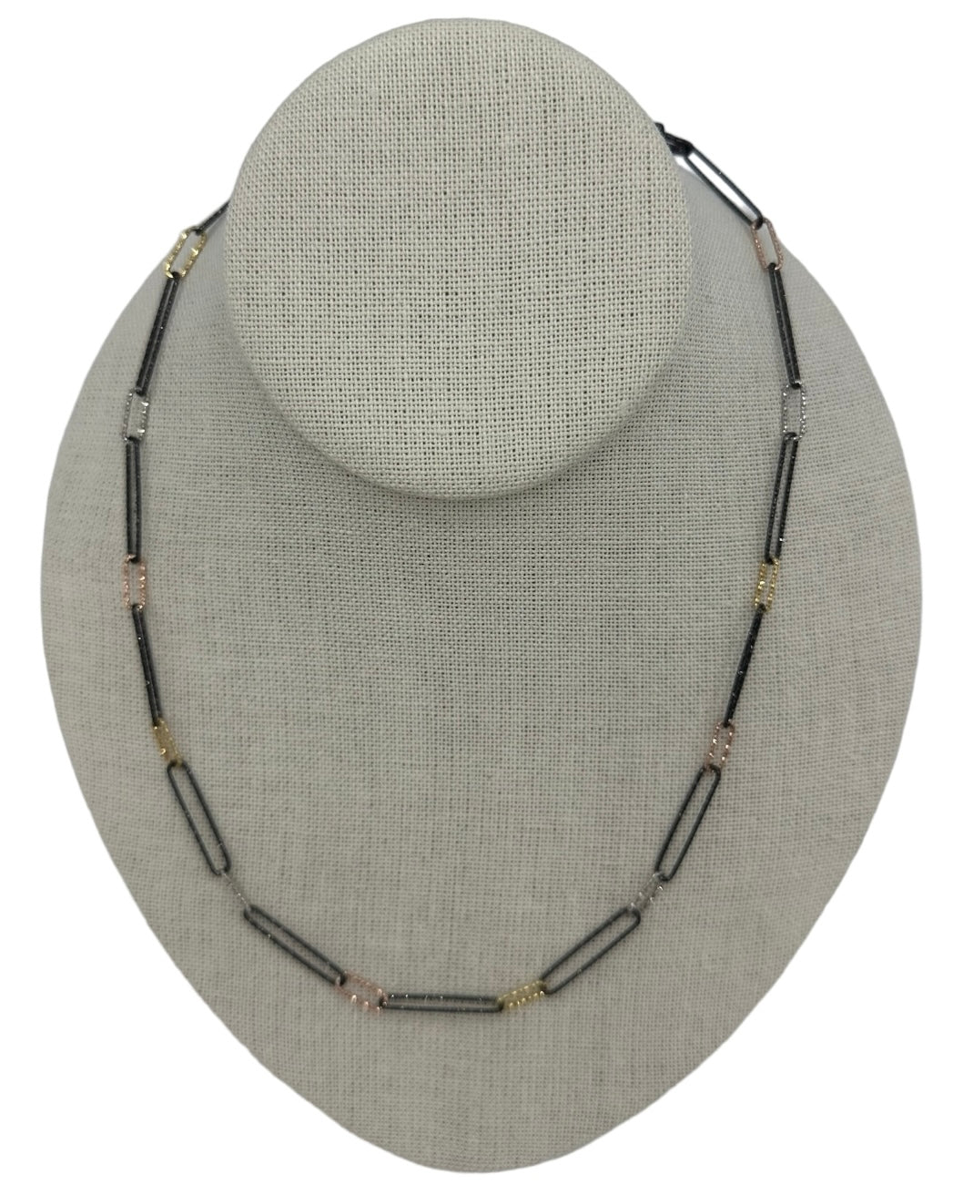 Mixed Metal Paper Clip Necklace - Gold & Black