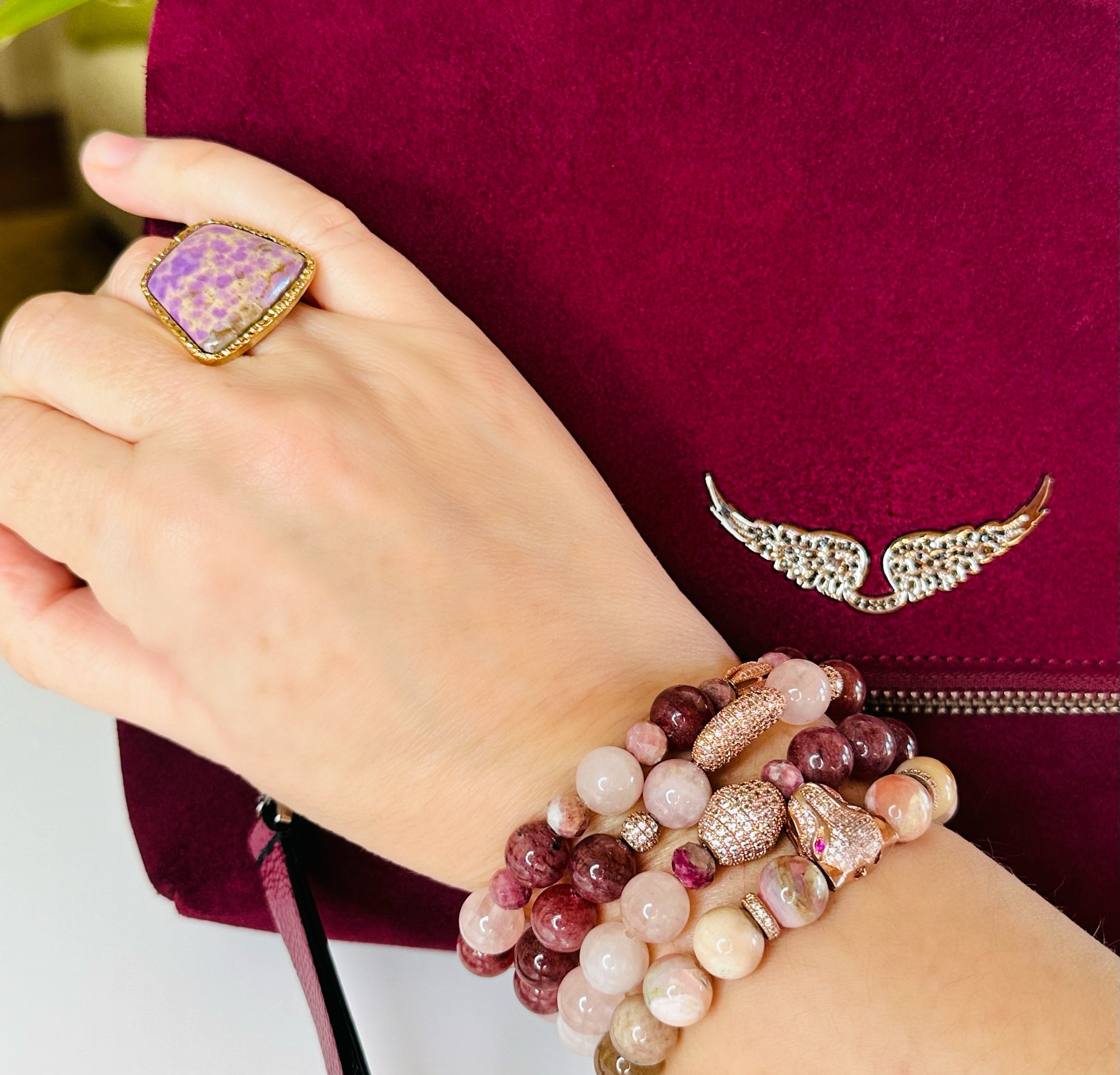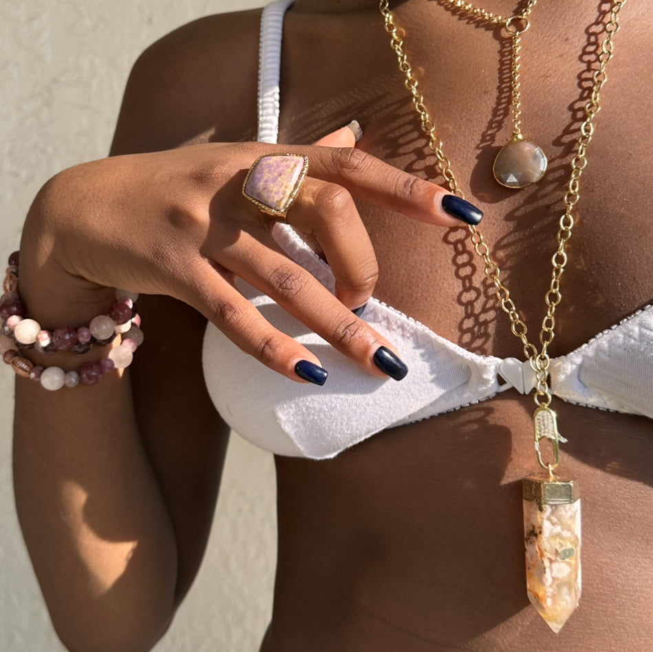 Experience positive energy and self-love with our Kunzite Ring. This crystal brings optimism and cultivates compassion, promoting personal growth and uplifting your mood. Let it guide you towards a fulfilling life.
