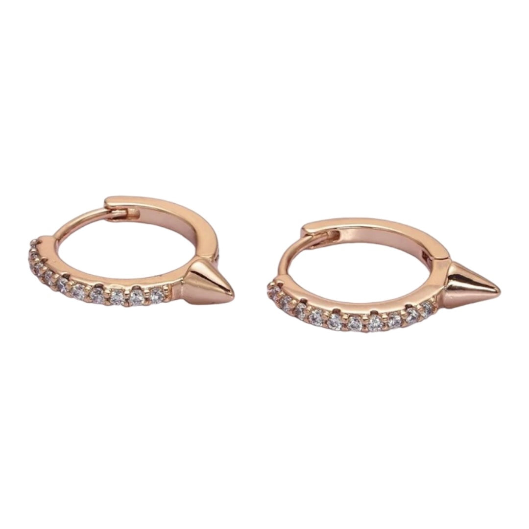 Unleash your edgy side with our Spike Hoop Earrings. Elevate your look with clear cubic zirconia and a sleek rose-gold finish. Dare to stand out and express your unique style with these modern hoops. Add a hint of sophistication to any outfit and conquer the day. Go bold with our Spike Hoop Earrings now!