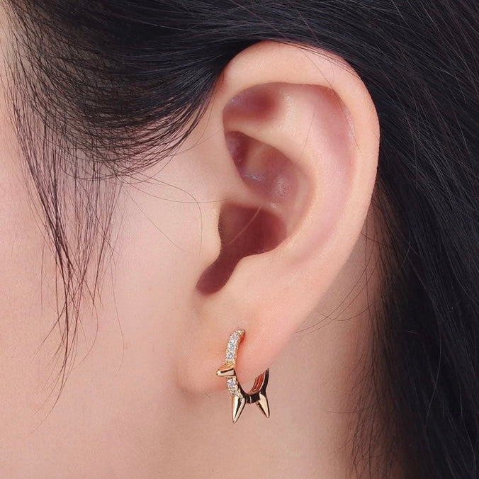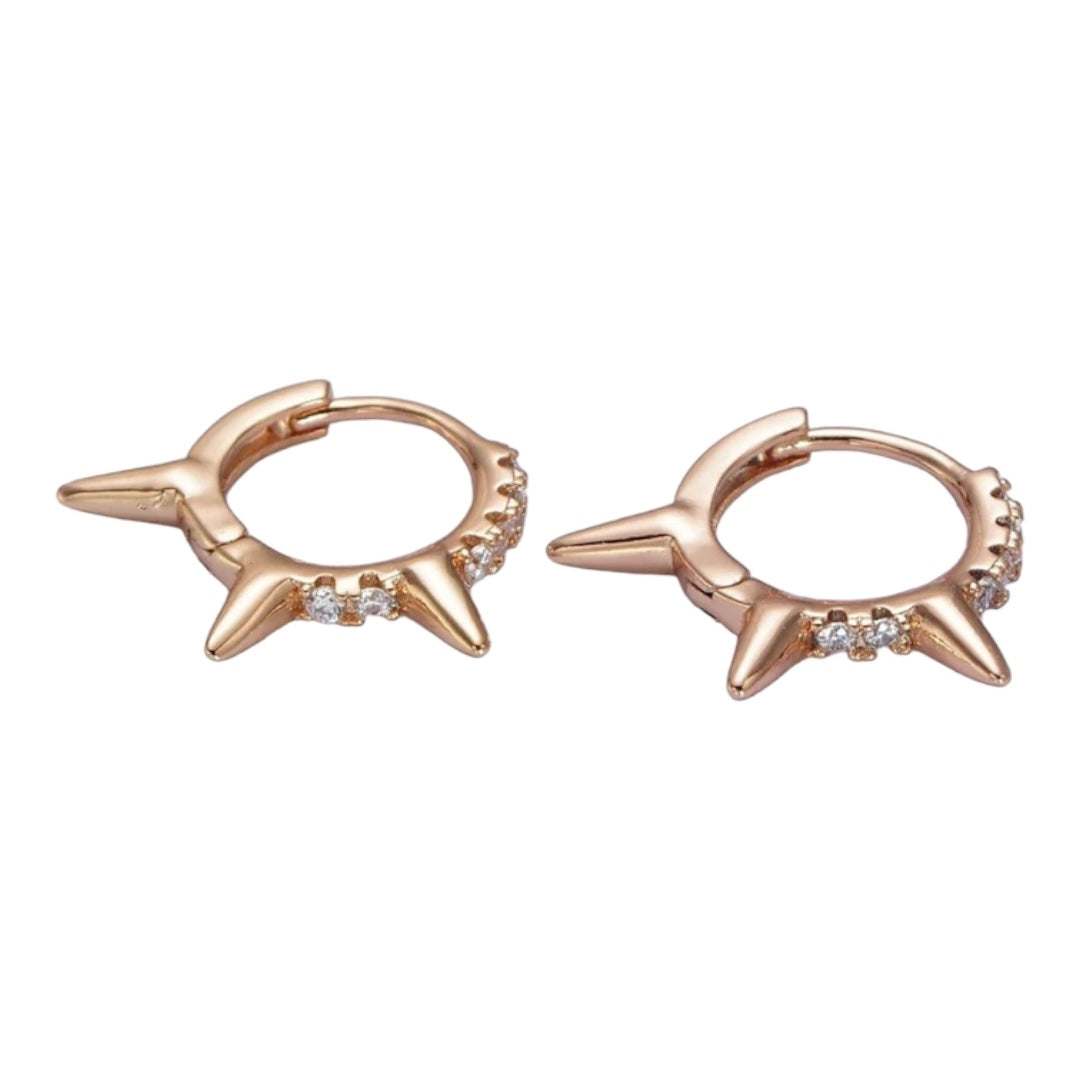 Spice up your jewelry game with our Three Spike Huggie Hoop Earrings! These earrings feature a trendy spike shape, a charming rose-gold coating, and dazzling micro-pave cubic zirconia.